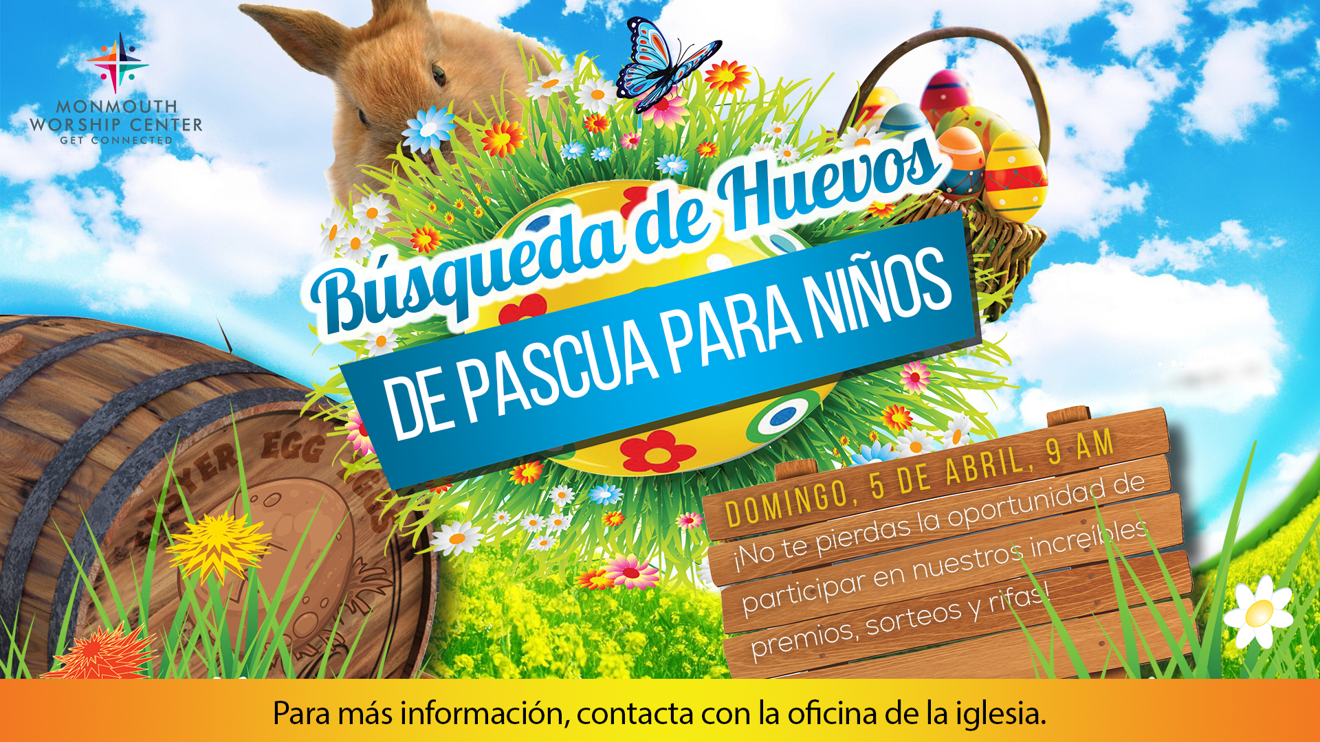 Acompáñenos en Monmouth Worship Center para nuestra Búsqueda de Huevos de Pascua para Niños el domingo 5 de abril a las 9:00 AM. Los niños disfrutarán buscando huevos coloridos mientras participan en premios, regalos y emocionantes sorteos. Este evento especial es una excelente oportunidad para que las familias celebren la temporada de Pascua juntas y creen recuerdos inolvidables en un ambiente alegre y acogedor. Invite a sus amigos y vecinos y sea parte de esta emocionante mañana de diversión y celebración.